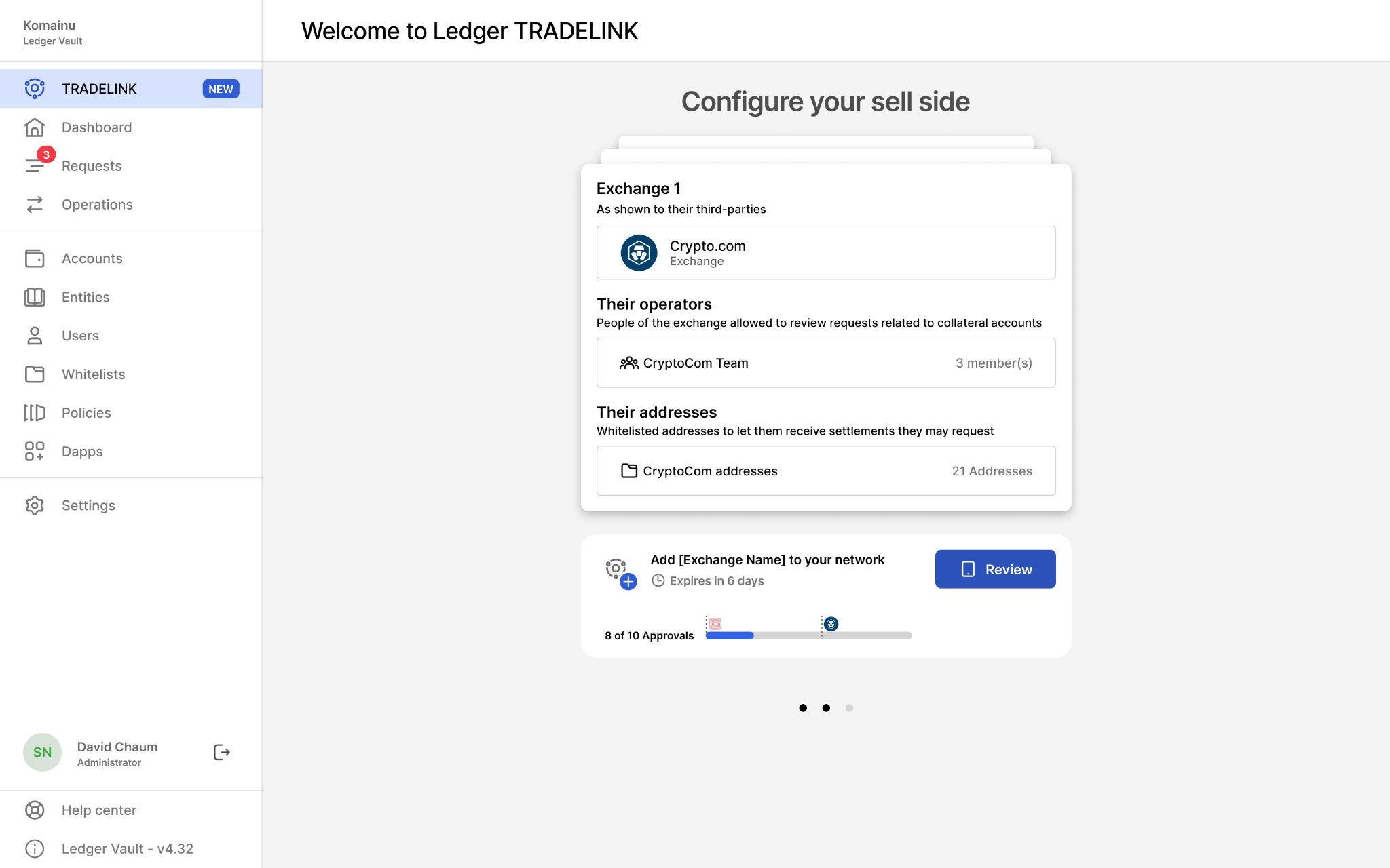 After making “Ledger Tradelink” accessible to all customers from their “Ledger Vault” platform, I designed the user-flow that would enable each institutional client to populate the network with new participants, which would grow in a bottom-up manner.